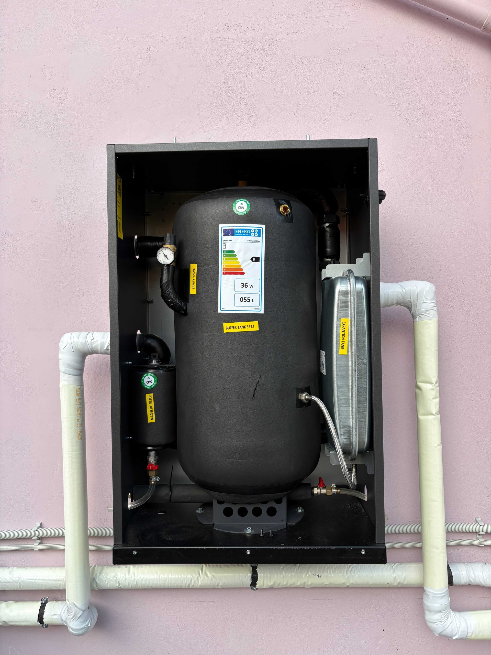 • Buffer (δοχείο αδρανείας), για υδραυλική σταθεροποίηση και μείωση των συχνών εκκινήσεων/διακοπών (on/off), κάτι που επηρεάζει θετικά απόδοση και μακροζωία.