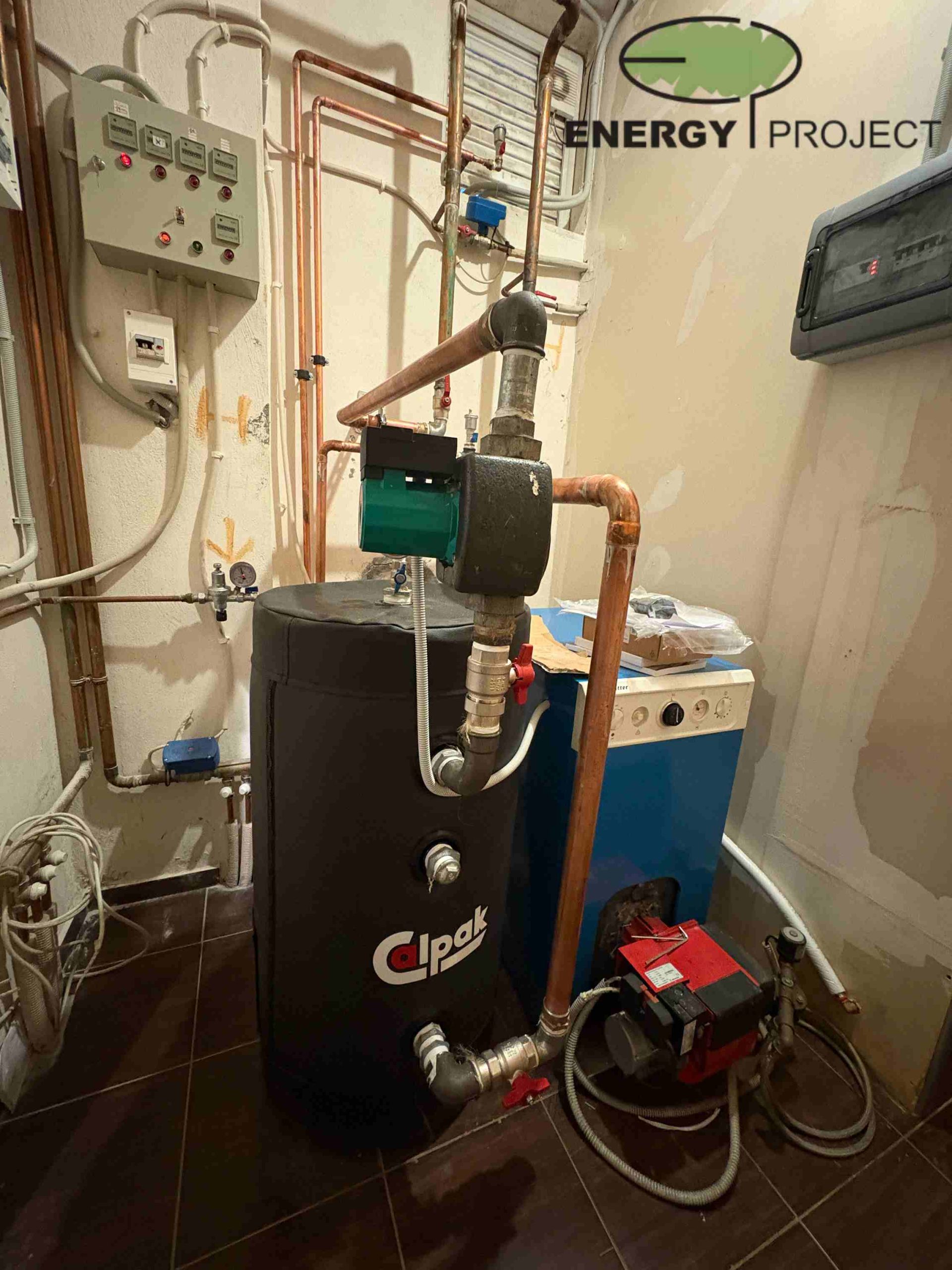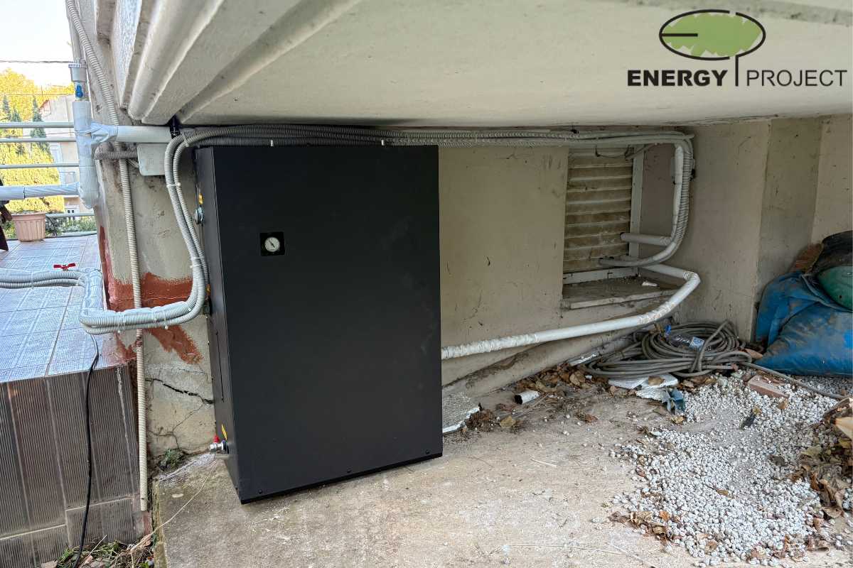 Παράλληλα με την εγκατάσταση της αντλίας θερμότητας, διατηρήθηκε και ο υφιστάμενος λέβητας πετρελαίου, ώστε να λειτουργεί υποστηρικτικά όταν οι εξωτερικές θερμοκρασίες γίνονται πιο απαιτητικές. Συγκεκριμένα, όταν η εξωτερική θερμοκρασία πέσει κάτω από τους 5°C, ενεργοποιείται ο λέβητας, εξασφαλίζοντας ότι η κατοικία θα συνεχίσει να έχει επαρκή και σταθερή θέρμανση χωρίς συμβιβασμούς στην άνεση.